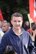 Olivier Besancenot (French pronunciation: ?[?.li.vje b?.z?~s.no]); born 18 April 1974) is a French far-left political figure and trade unionist, and the founding main spokesperson of the New Anticapitalist Party (Nouveau parti anticapitaliste, NPA) from 2009 to 2011.