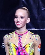 She holds the record as the youngest rhythmic gymnast to win the World Championships in the All-around at 15 years of age.