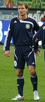 He played for the Belarus national football team and scored two goals against Germany in a friendly match on 27 May 2008.