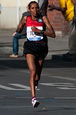 Her last major race of the year came at the Turin Marathon and she again improved: it became a two-woman race between Tola and Priscah Jeptoo and although it was her Kenyan rival who claimed victory, Tola ran a best of 2:28:22 hours as the runner-up.Her 2011 season began with a second-place finish at the Berlin Half Marathon.
