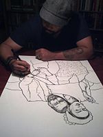 Jermaine Rogers (born October 14, 1972 in Houston, Texas) is an artist and designer in the field of modern rock/pop poster art, also known as 'gigposter' art, as well as serigraph and fine art production.