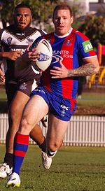 He plays at halfback and fullback and previously played for the Newcastle Knights in the National Rugby League.