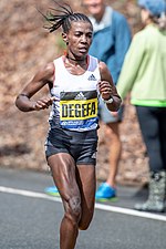 As of April 2019, she is also ranked just outside the top 25 in the half marathon, running 1:06:14 at the Prague Half Marathon in 2016.On April 15, 2019, Degefa won the Boston Marathon in 2:23:31 in front-running fashion, by surging away from the field only 8 km into the race, despite never having seen the course before, even in training.