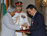 The Government of India awarded him the fourth highest civilian honour of the Padma Shri, in 2006, for his contributions to Indian literature.