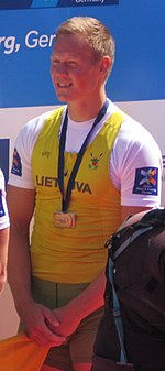 At the 2016 European Championships, he won silver with the Lithuanian quadruple sculls team.