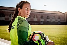 She is known for her athleticism, speed & agility, leaping ability and high technical level, being considered the Jorge Campos of women's soccer.