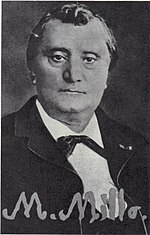 Matei Millo (Romanian pronunciation: [ma'tej mi'lo]; November 24/25, 1814–September 9, 1896) was a Moldavian, later Romanian stage actor and playwright.