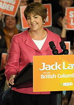 She is the former Leader of the Opposition in British Columbia and former leader of the British Columbia New Democratic Party (NDP), a social democratic political party.