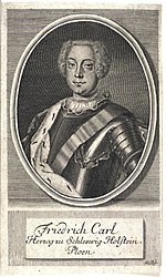 Frederick Charles of Schleswig-Holstein-Sonderburg-Plön (August 4, 1706, Sønderborg – the night of October 18–19, 1761, Traventhal), known as Friedrich Karl or Friedrik Carl of Holstein-Plön, was a member of a cadet branch of the Danish royal family and the last duke of the Duchy of Schleswig-Holstein-Sonderburg-Plön (or Holstein-Plön), a Danish royal prince, and a knight of the Order of the Elephant.
