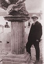 His monument is surmounted by a glacial erratic boulder which shows jasper inclusions.