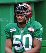 He then played three seasons in the Canadian Football League (CFL) for the Saskatchewan Roughriders, where he led the league in tackles 2011.