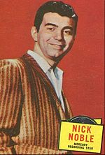 Nick Noble (born Nicholas Valkan, June 21, 1926 – March 24, 2012) was an American pop singer, who was best known for his recordings of "The Tip of My Fingers" and "Moonlight Swim".Born in Chicago, Illinois, Noble was a graduate of Hirsch Metropolitan High School and Loyola University and a navy veteran in the later days of World War II.Noble was popular in the mid-1950s, and he scored four hits on the newly created Billboard pop charts between 1955 and 1957.
