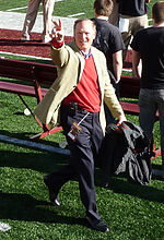 He is also known for his work as a former sportscaster, beginning with CBS Sports in 1982, and ending his career in that field as a color commentator for NBC Sports' Notre Dame football coverage.