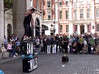 He performs under the name The Boy With Tape On His Face and, more recently, as Tape Face.