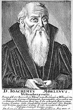 Joachim Mörlin April 5, 1514, Wittenberg, Electorate of Saxony – May 29, 1571, Königsberg, Duchy of Prussia (later Kaliningrad in the Soviet Union / Russian Federation after World War II - 1945) was an Evangelical Lutheran theologian and an important figure in the controversies following Martin Luther's (1483-1546) death.